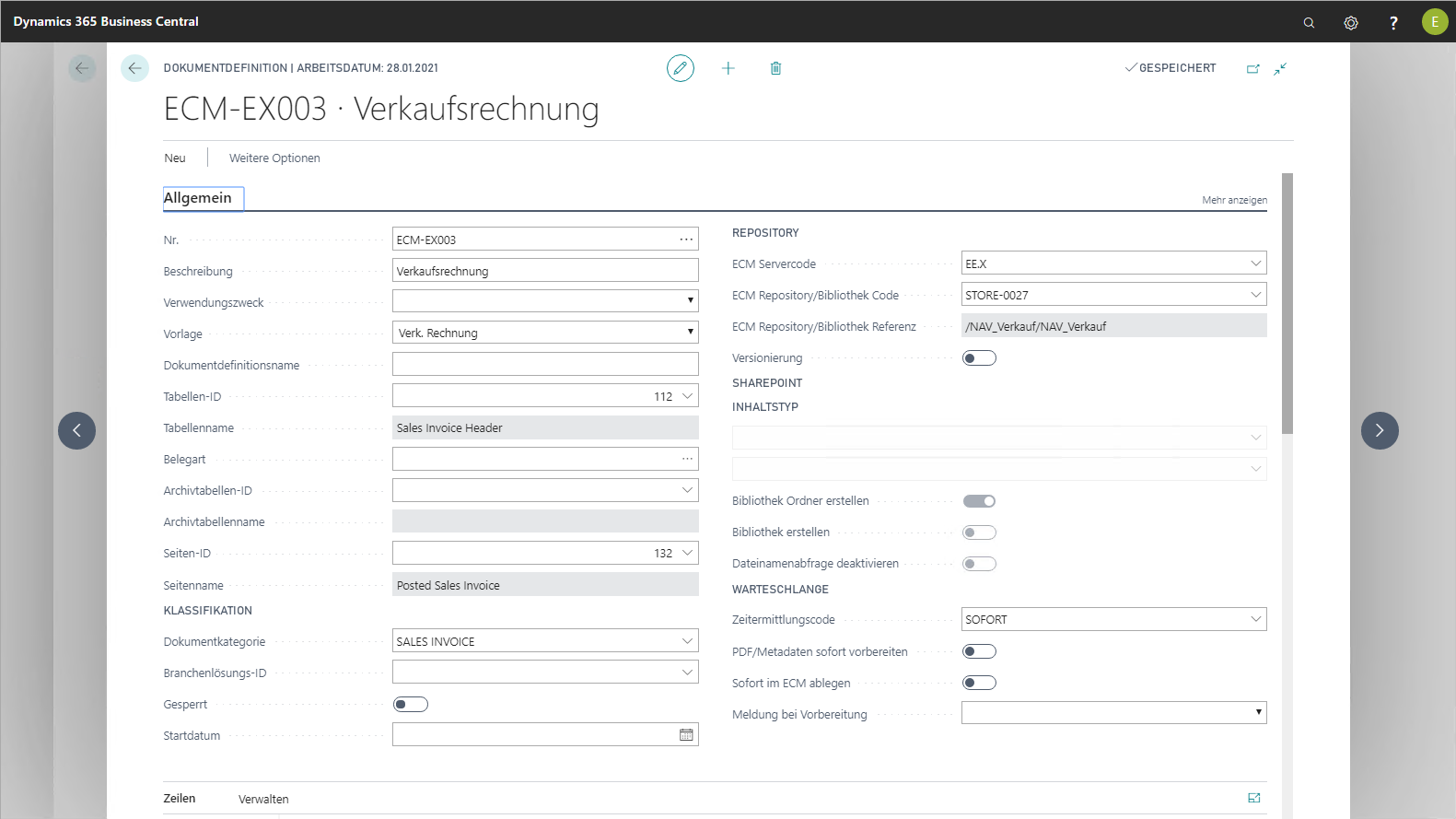 Gesperrt | Durch Aktivierung dieser Option kann die aktive Nutzung der Dokumentdefinition abgeschaltet werden. |
