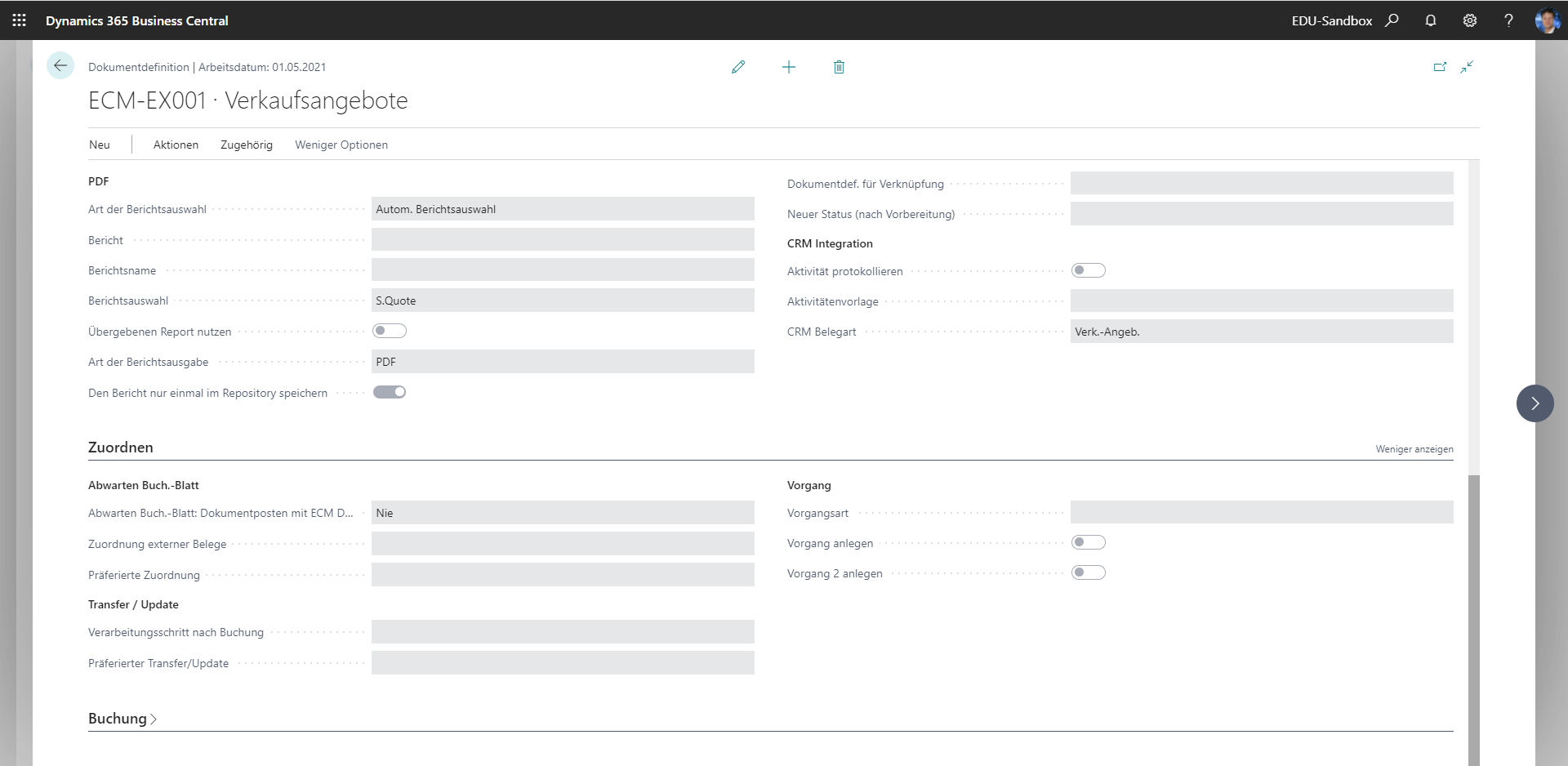 *Die Felder im Abschnitt Transfer betreffen die Transferfunktionalität und werden dynamisch ein- oder ausgeblendet je nachdem, ob der Wert "Transfer" bzw. "Transfer direkt ohne Dokumentposten" im Feld "Verarbeitungsschritt nach Buchung" eingestellt ist.