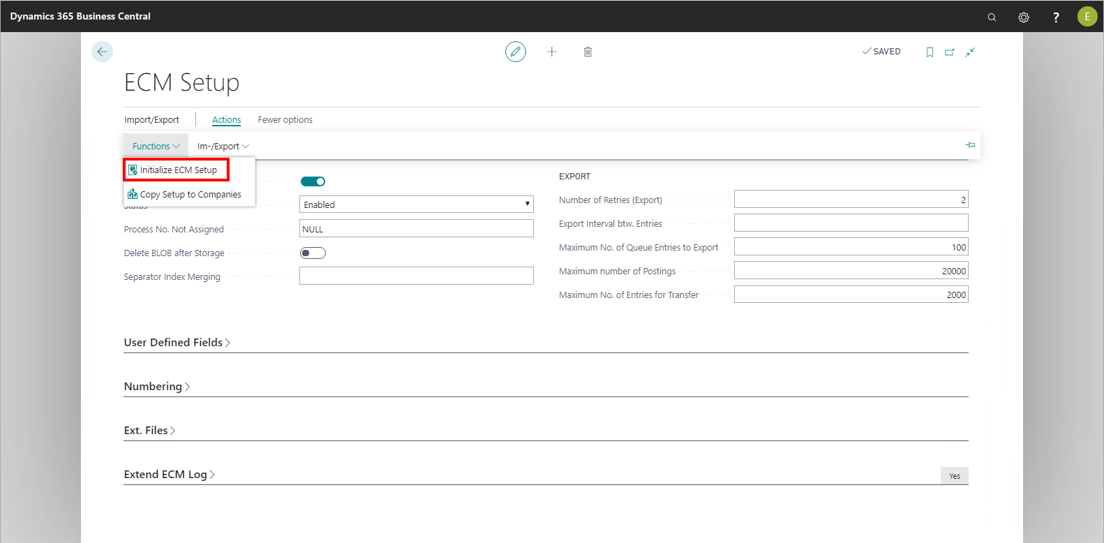 Import ECM basic setups (C/SIDE format) | Imports the basic setup of the interface that has been created from a previous installation in C-SIDE format. |