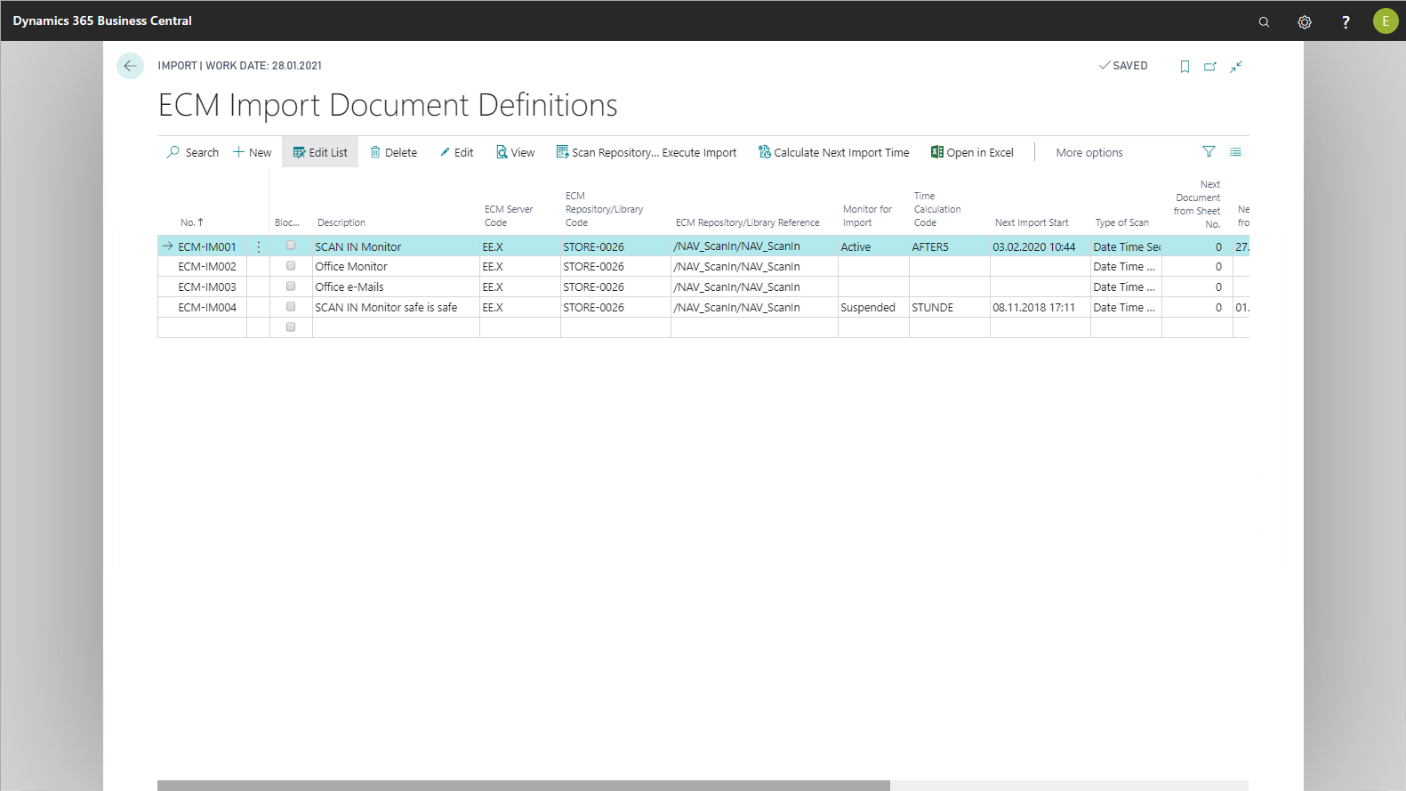 , like documents stored on the ECM system by external applications are imported into Microsoft Dynamics 365 Business Central and, using the document definition, these documents are assigned to processes or documents.