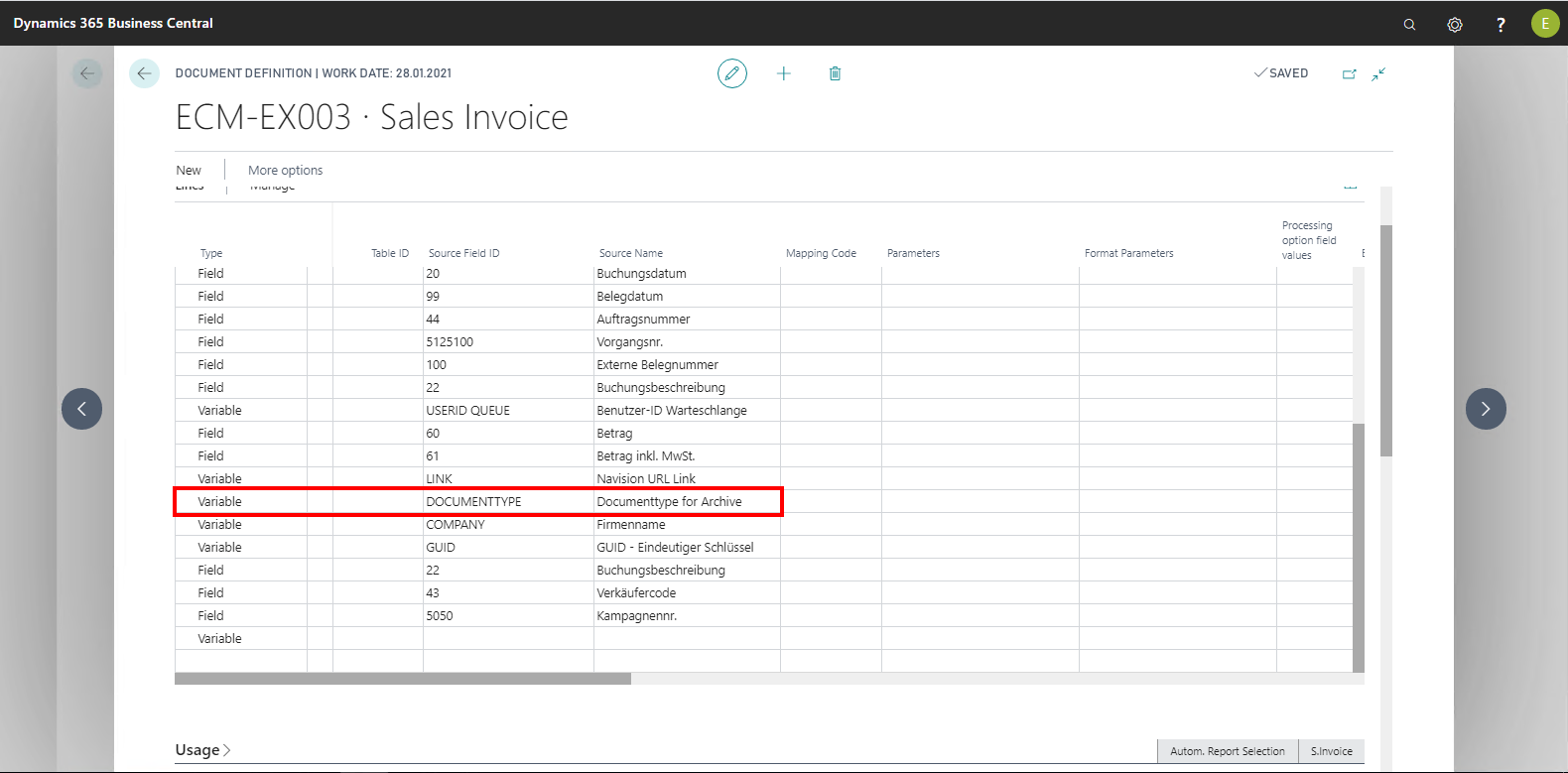 Document Category Matrix Internal | Here is logged with how often, where and with which filter a document category is used. This is helpful to set up the document category matrix according to your own wishes. |