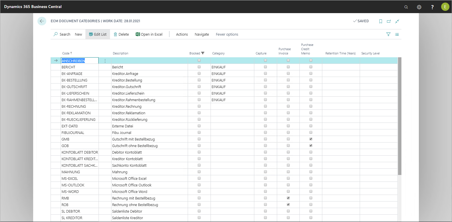 Retention Time (Years) | Here you can set up the retention period per document category. Only whole numbers may be used. |