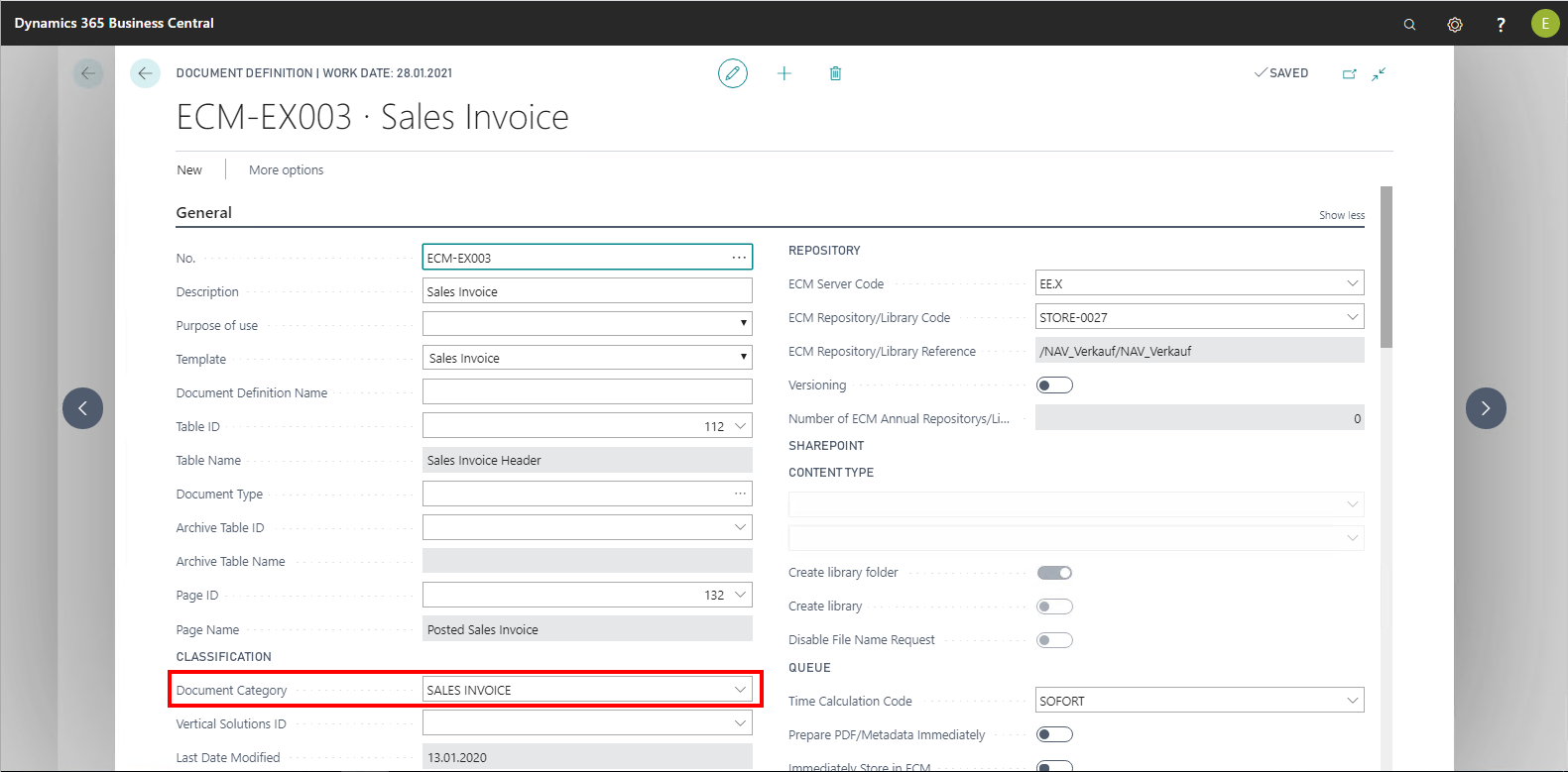 Document categories are transmitted to the Document Category field within the document entries if you have set up this in the document definitions. For this purpose, in the document definitions, a document category can be stored in the field of the same name in the General FastTab.