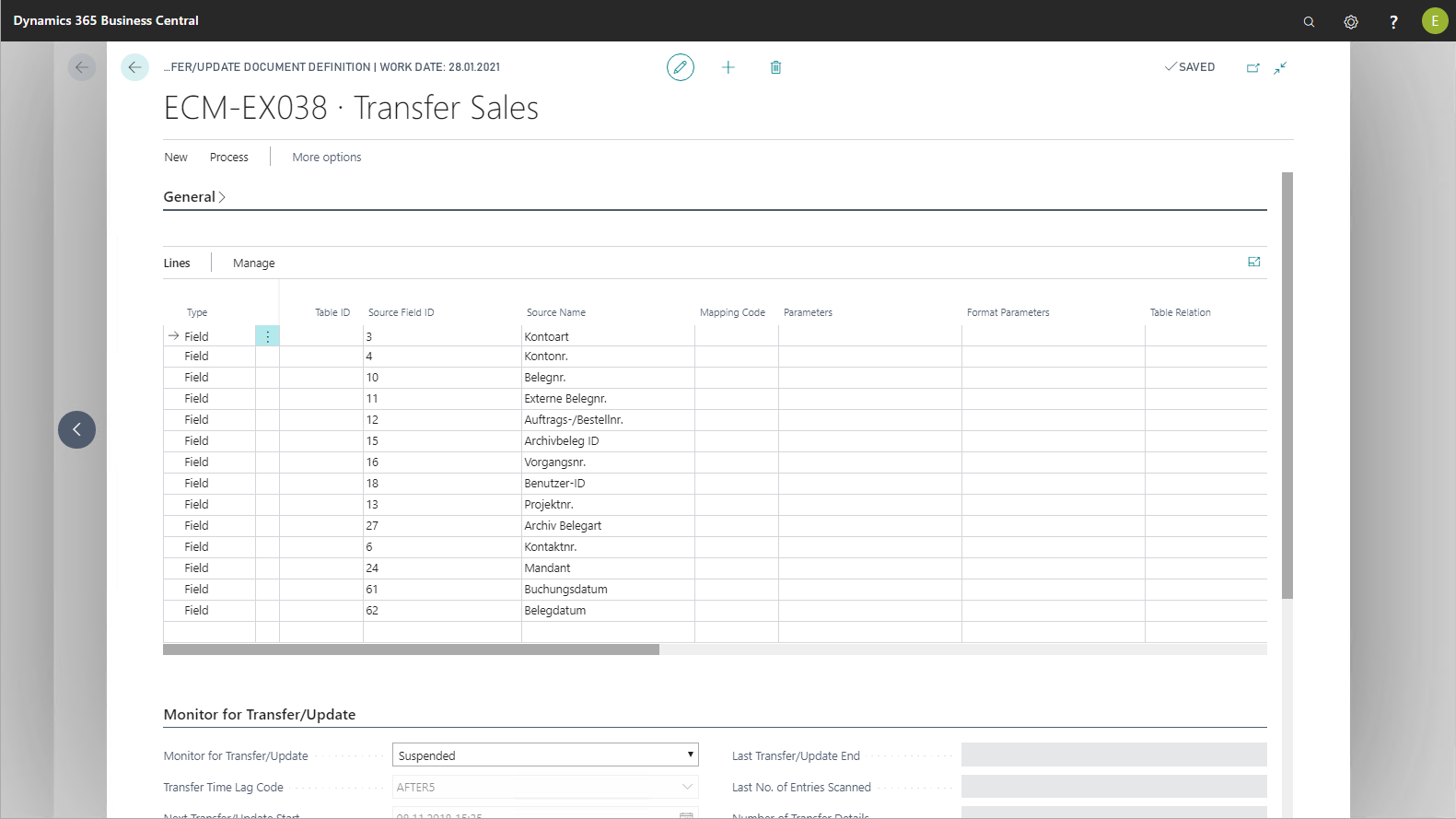 The "Lines" FastTab (Transfer/Update Document Definition)