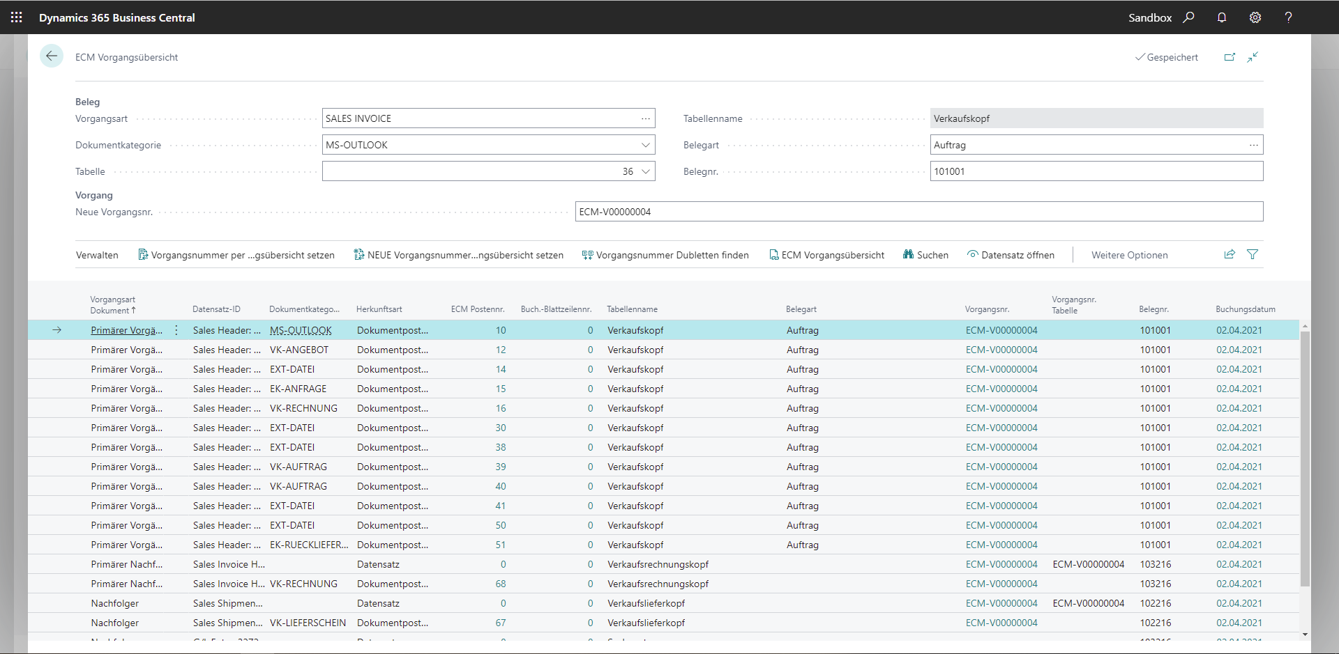 Find entries with ECM Document ID (Barcode) | Starts a search that shows all related entries in Business Central that have the same Document ID (Barcode) as this document entry. |