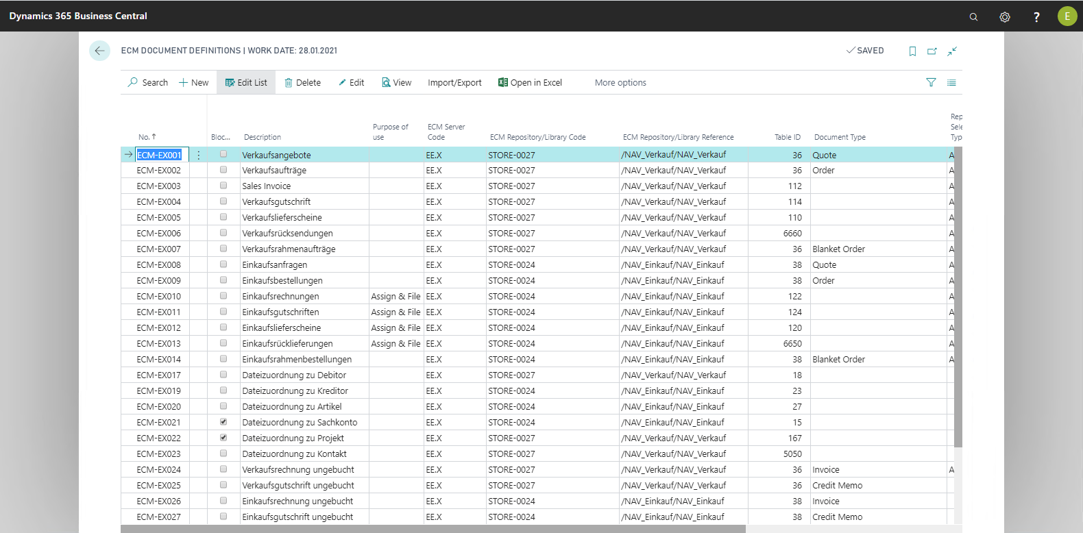 Document definitions are of crucial importance for linking Microsoft Dynamics 365 Business Central and EASY Archive / Microsoft SharePoint. They are used to set in detail and for each document type created in Microsoft Dynamics 365 Business Central which data will be transferred from Microsoft Dynamics 365 Business Central and EASY Archive / Microsoft SharePoint, and how this is performed in terms of time.