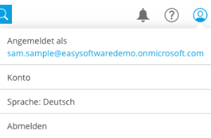 Das Avatar-Menü weist den Eintrag des aktuell angemeldeten Benutzers auf und ermöglicht die Abmeldung vom Archiv. Des Weiteren können Sie hier auf Ihr Konto zugreifen sowie die aktuelle Spracheinstellung ändern.