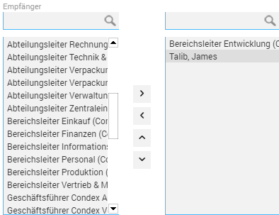 kann die Reihenfolge der Empfänger nachträglich geändert werden. Selektieren Sie hierzu den jeweiligen Empfänger und verschieben Sie diesen an die gewünschte neue Position.